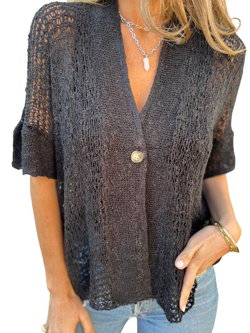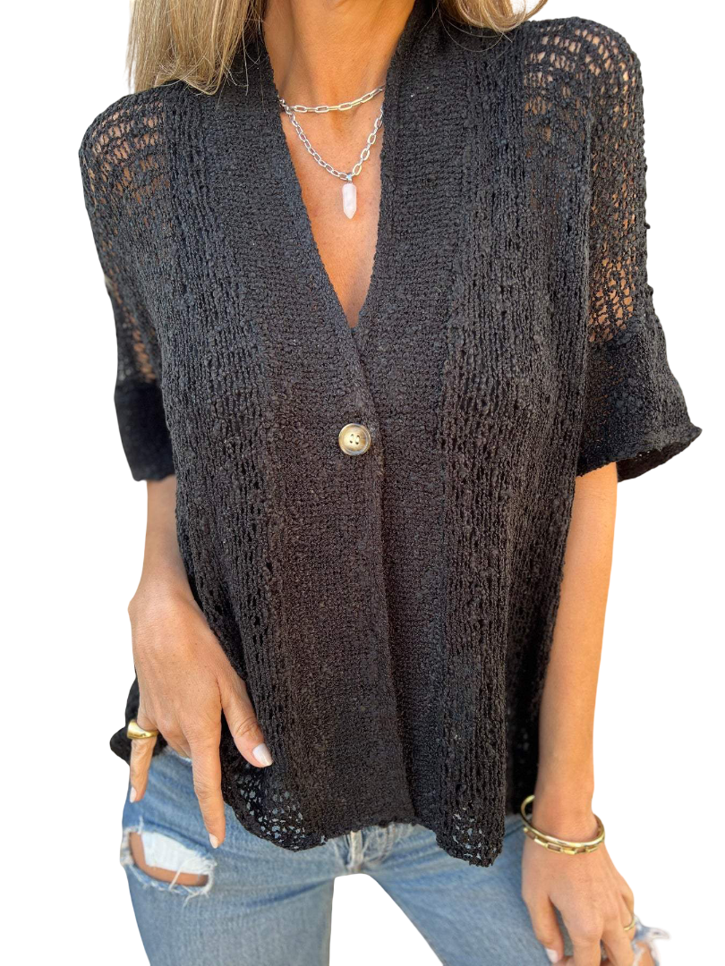 צווארון V עם כפתור: נקודת מוקד פשוטה אך שיקית שמשלימה כל הופעה.