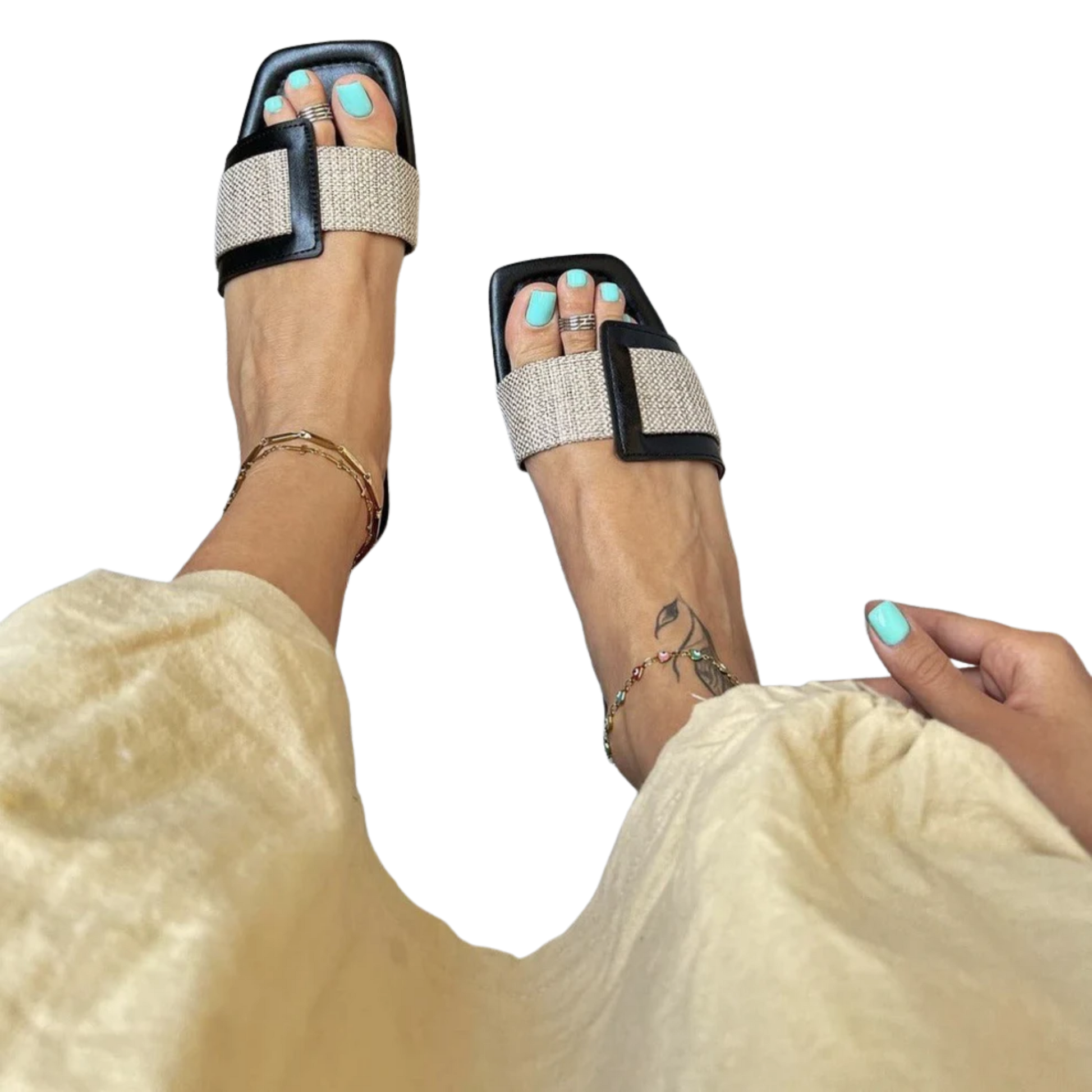 נוחות לאורך כל היום: סוליית גומי רכה ועיצוב רצועה אחת לנעילה קלה ומהירה.
