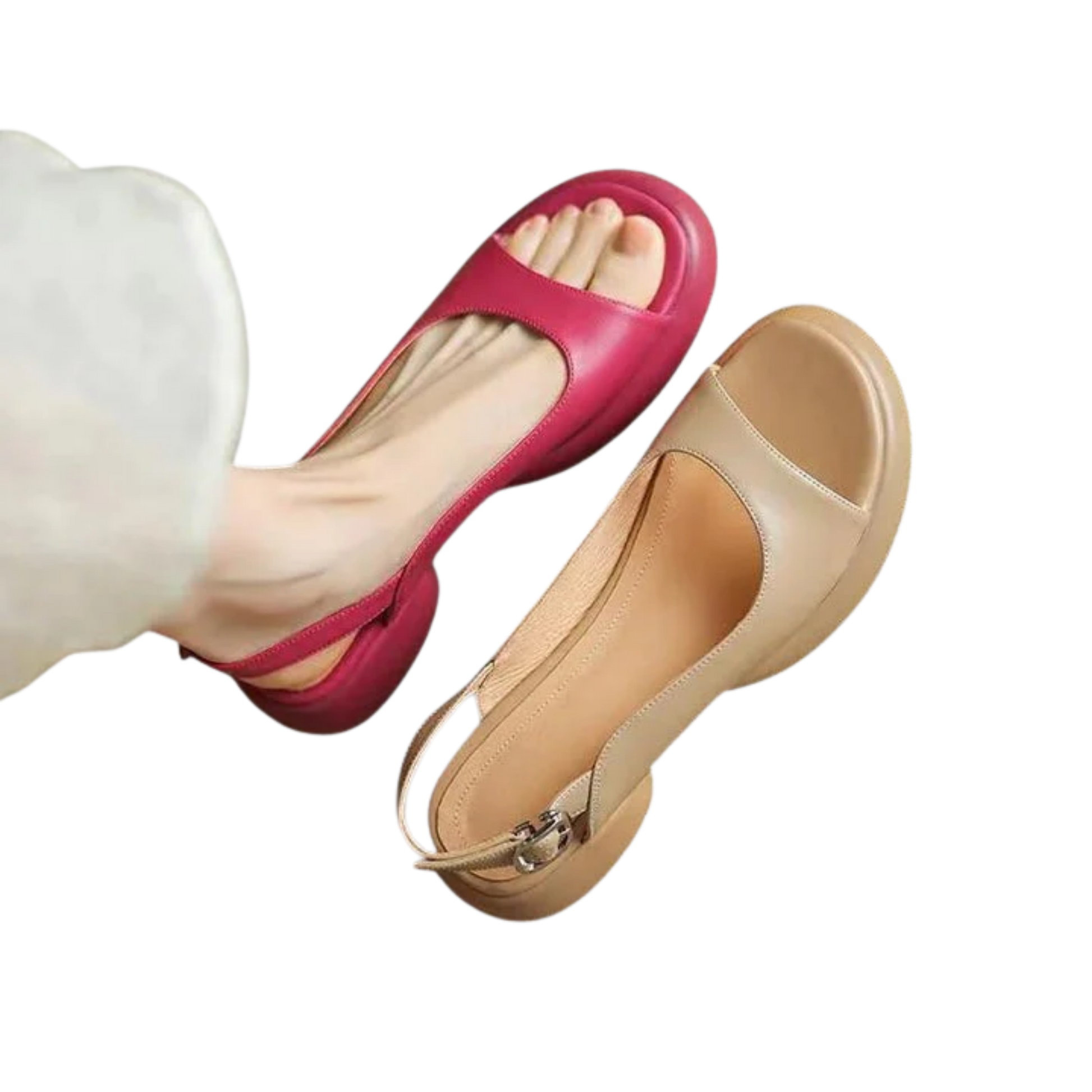 קרירות וסטייל – עיצוב פתוח בקדמת הרגל עם רצועת גב בטוחה להתאמה נוחה ובטוחה.