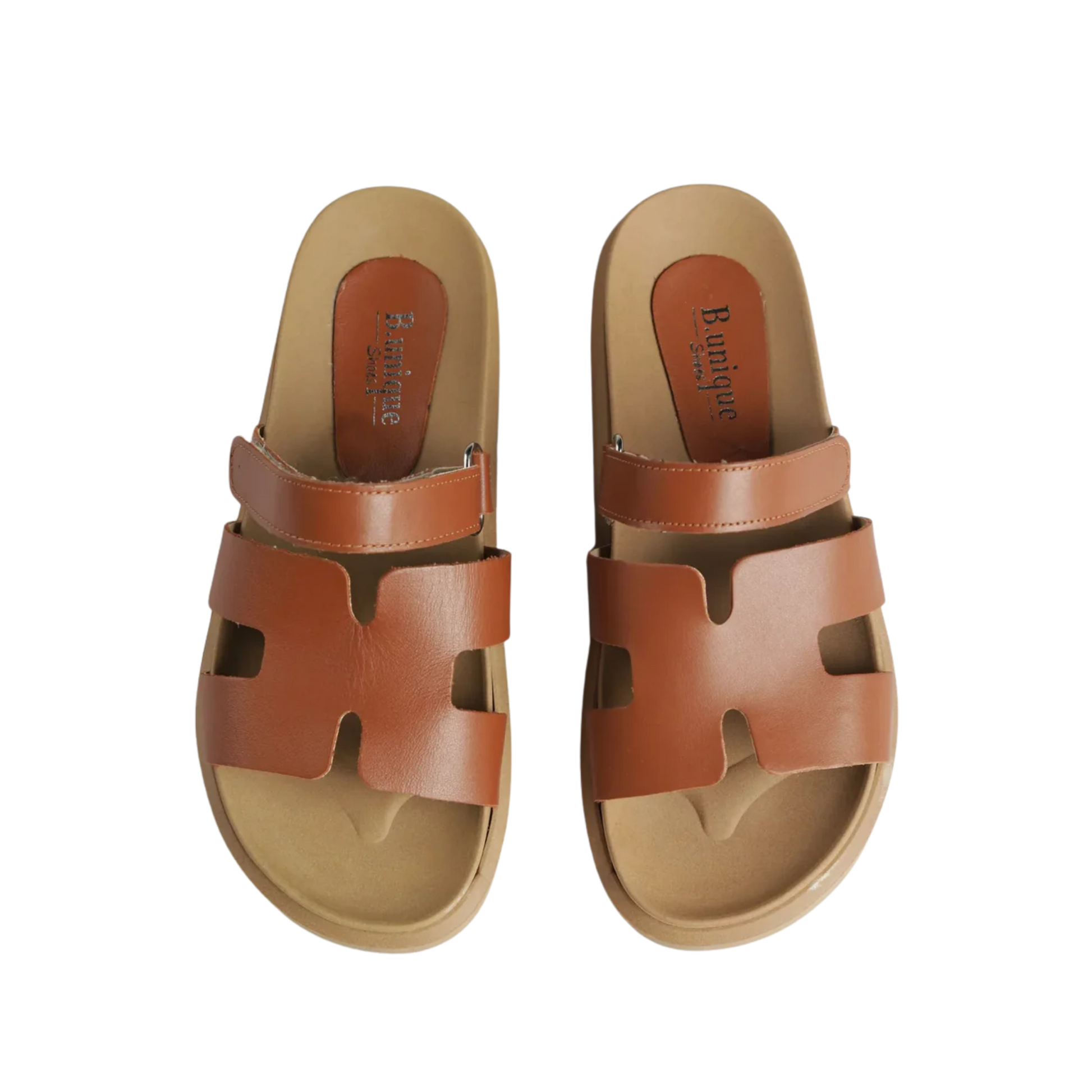 תמיכה ויציבות – סוליה רחבה ותומכת ורצועת עור מרובעת שמחזיקה את הרגל בבטחה.
