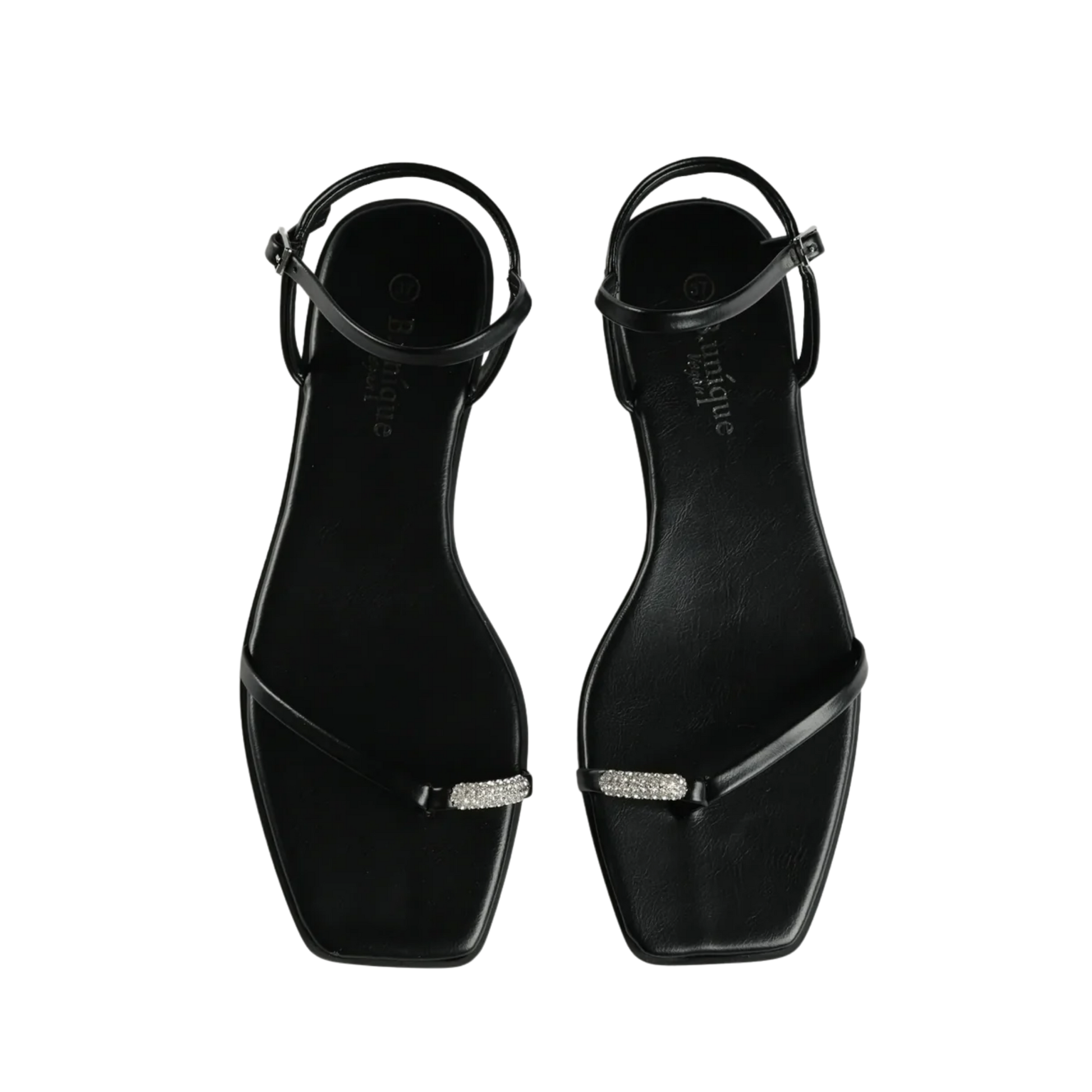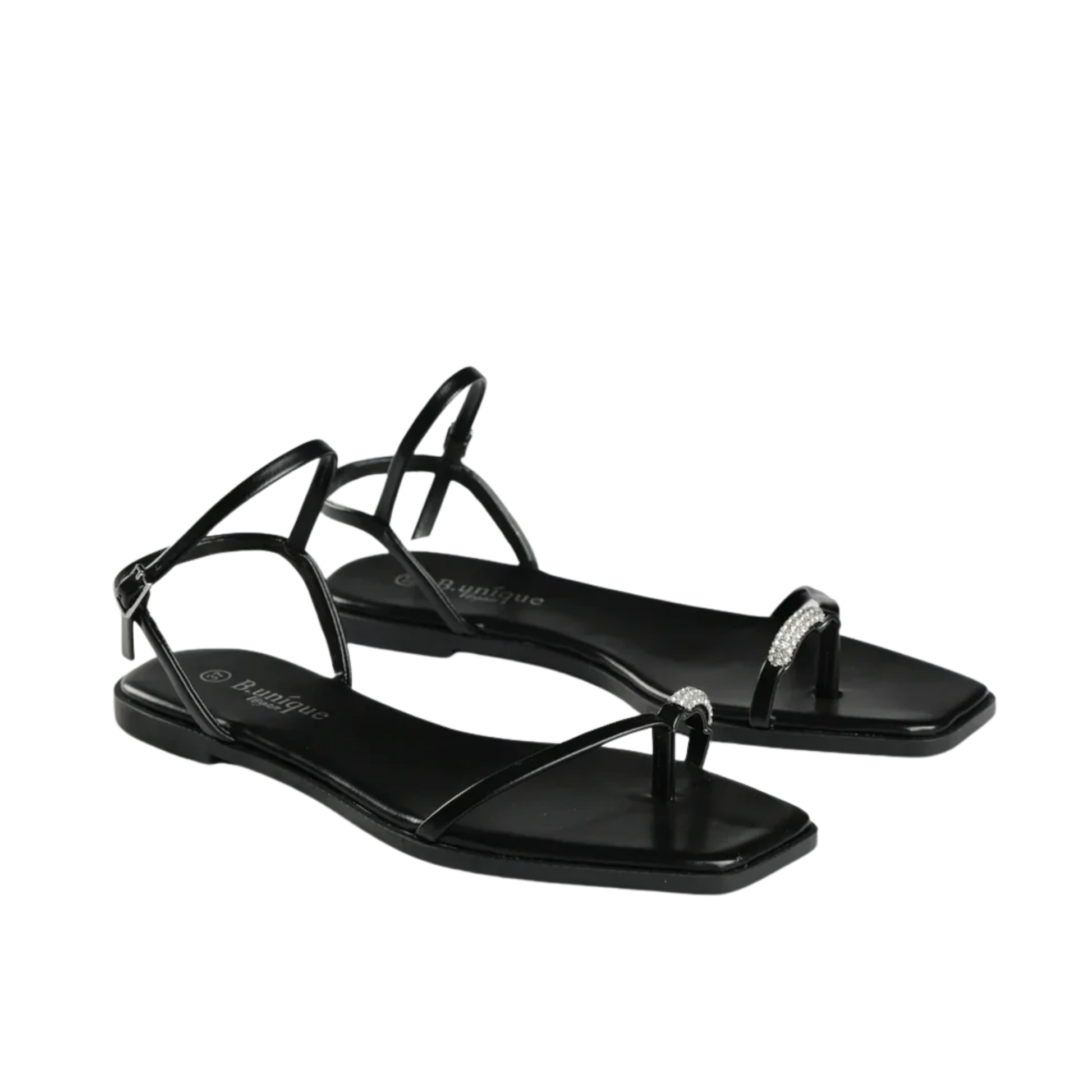 סנדלי טבעת יהלומים שטוחים בעיצוב אצבע אלגנטי. רצועות דקות עם נגיעות נוצצות למראה ייחודי וזוהר.