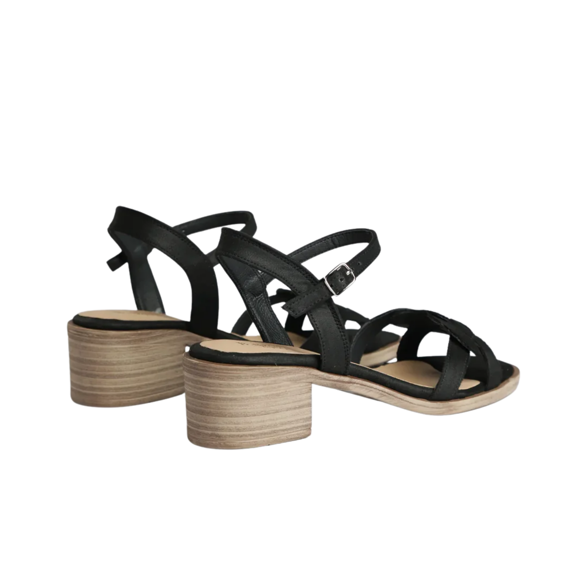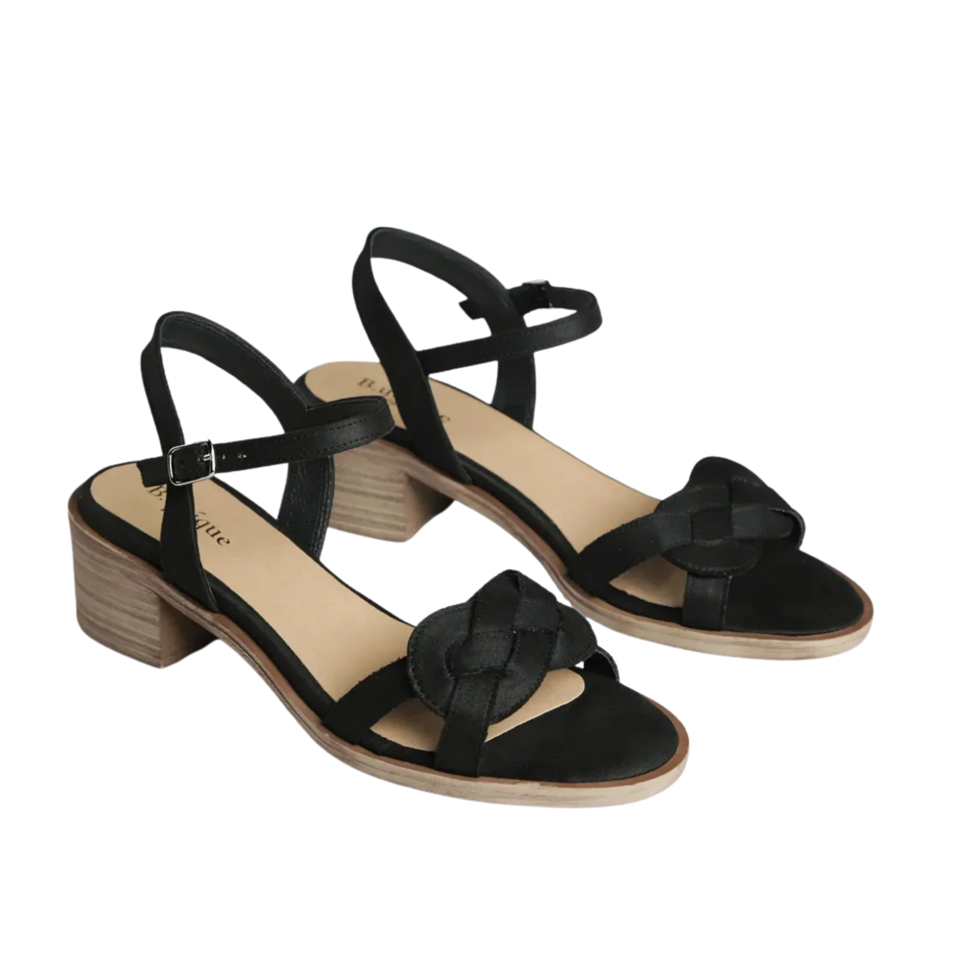 סנדלי עקב נמוך עם רצועות קלועות בעדינות, עשויים מדמוי עור במראה נקי. עיצוב נשי ומודרני שמשתלב נהדר במראה יומיומי או באירועים מיוחדים.