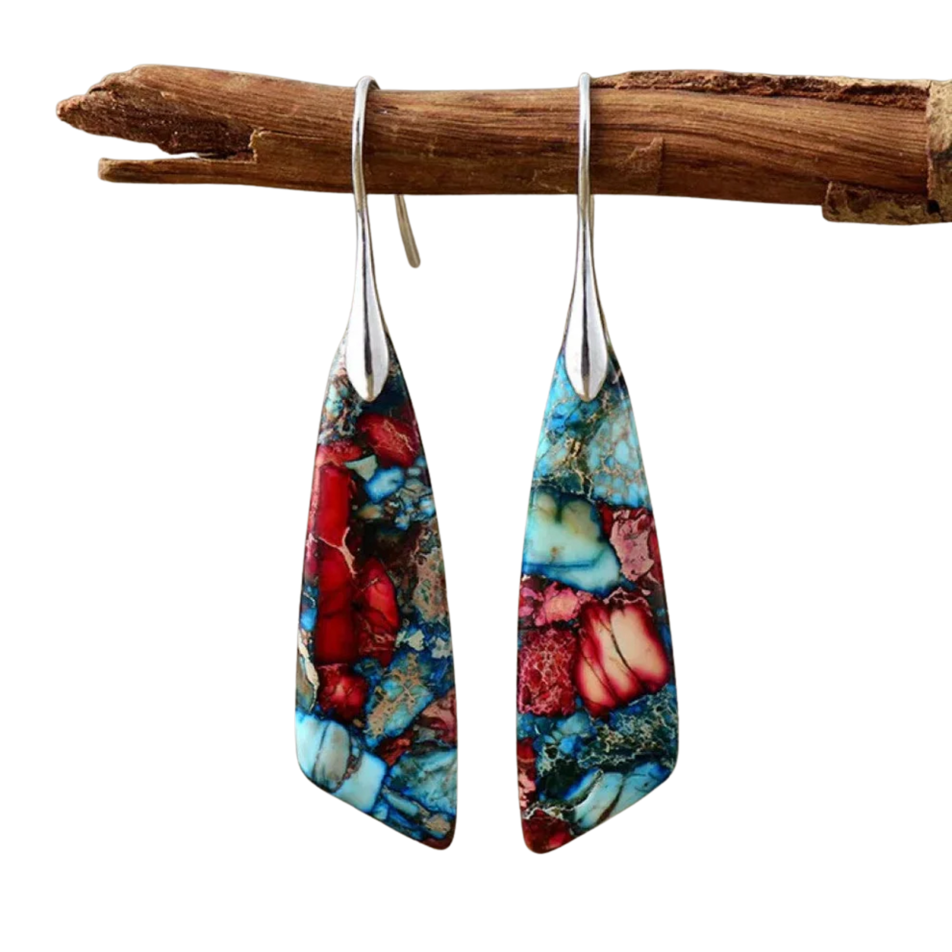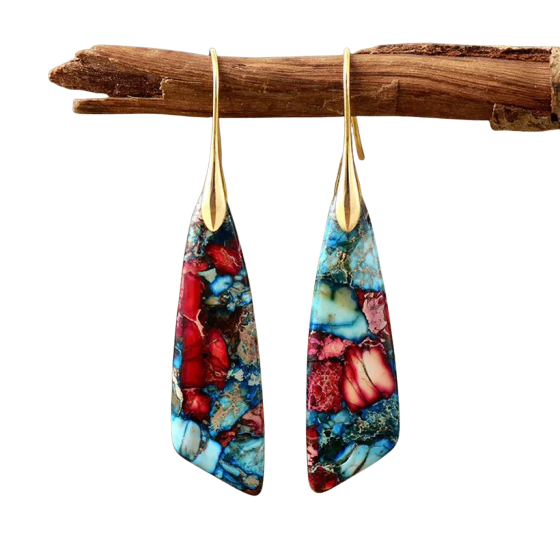 עיצוב ייחודי: כל עגיל מציג שילוב חד־פעמי של אבנים צבעוניות שמוסיפות ייחודיות לכל הופעה.
